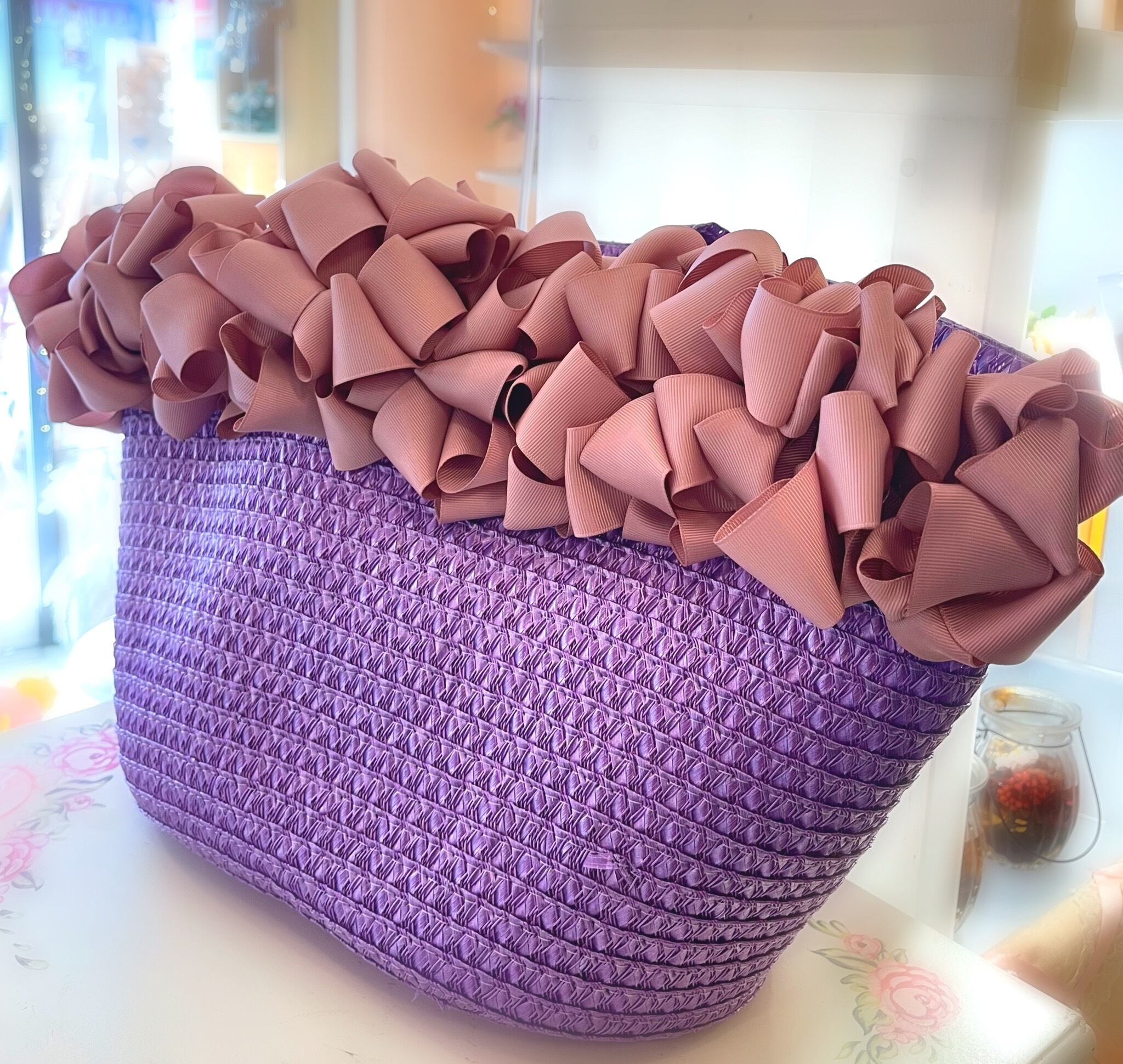 ピッタリのリボンアレンジかごバッグです。