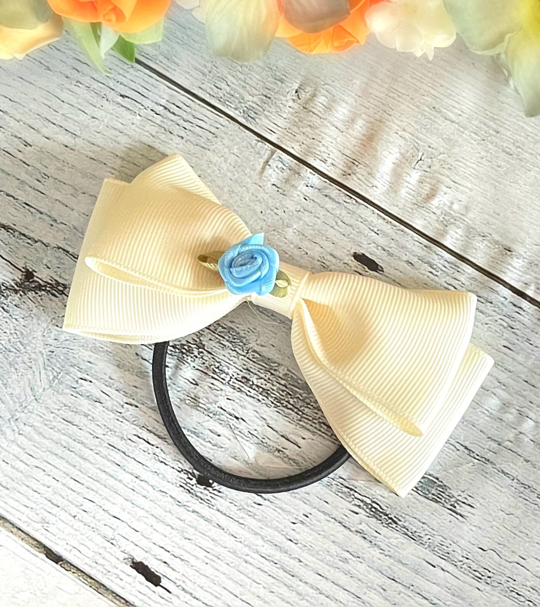 フレンチスタイルのちょっと上質でエレガントなデザインのヘアゴム飾り♬ローズリボンをアレンジしています。