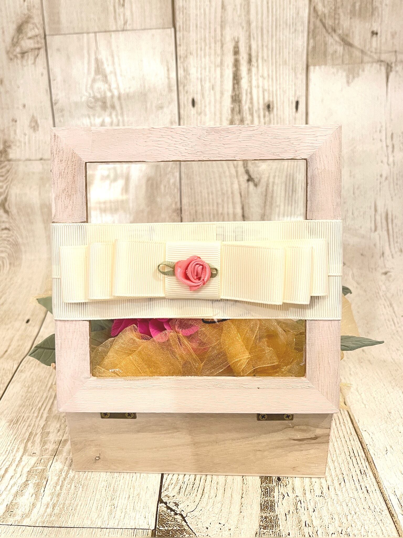 クレイフラワーとリボンワークの共演!ボックスフラワーアレンジメントです♪