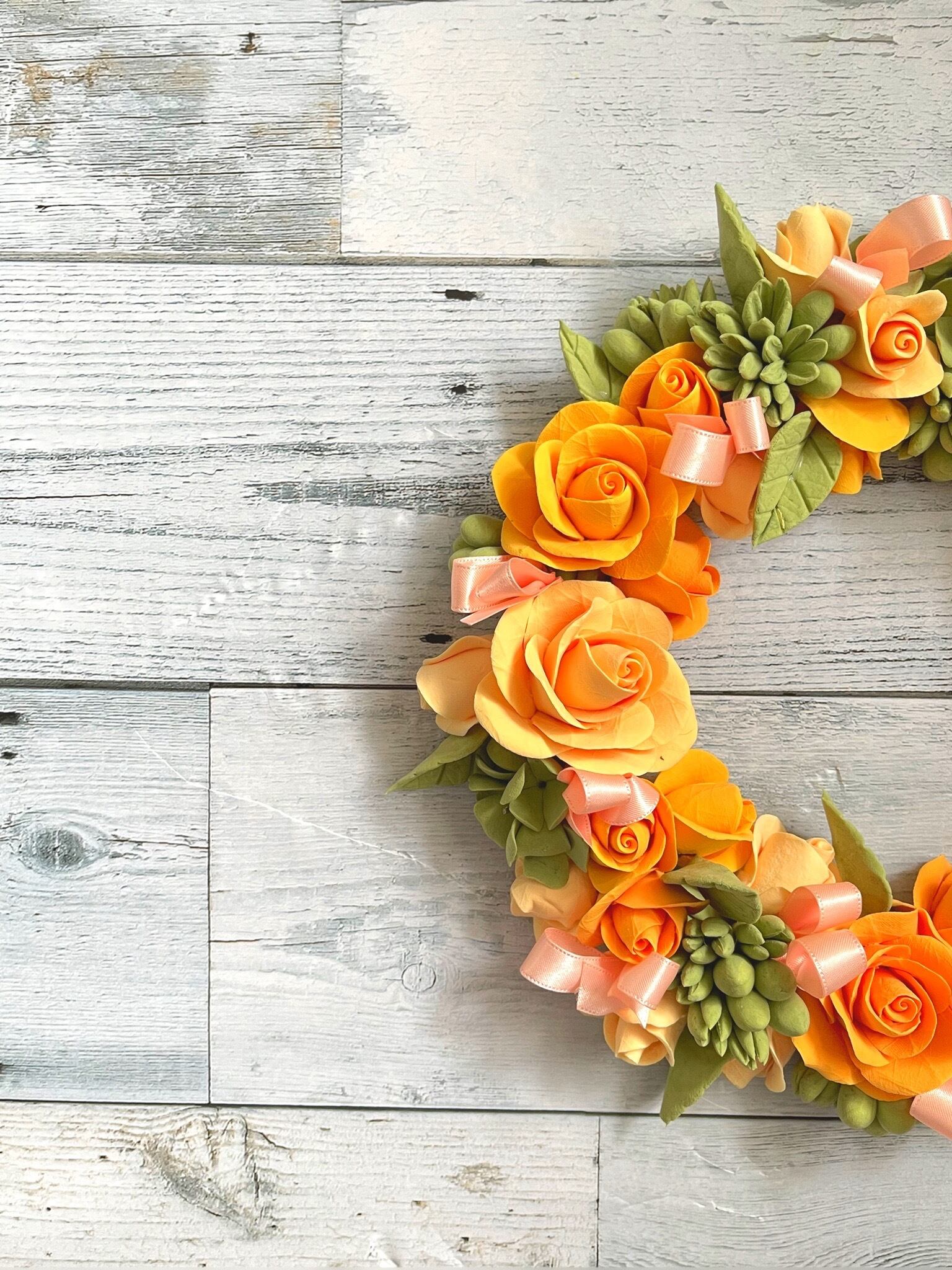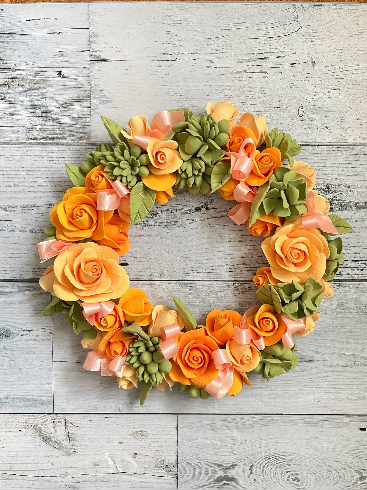 【ClayArt】エターナルフラワー*ビタミンカラーリースとサテンリボンのコラボレーション