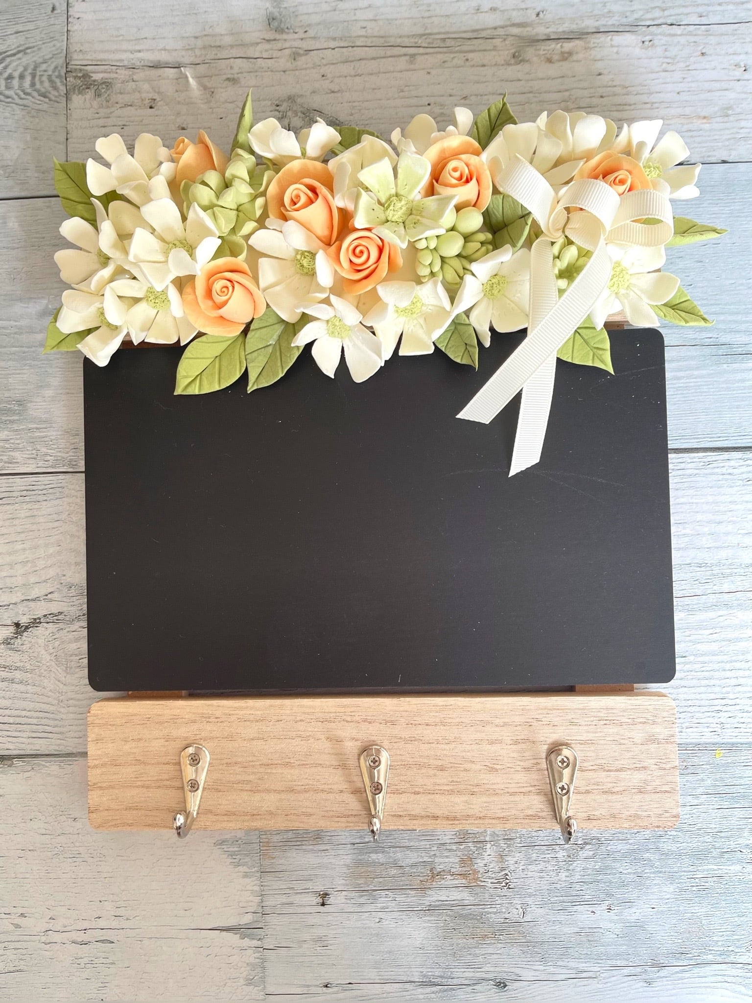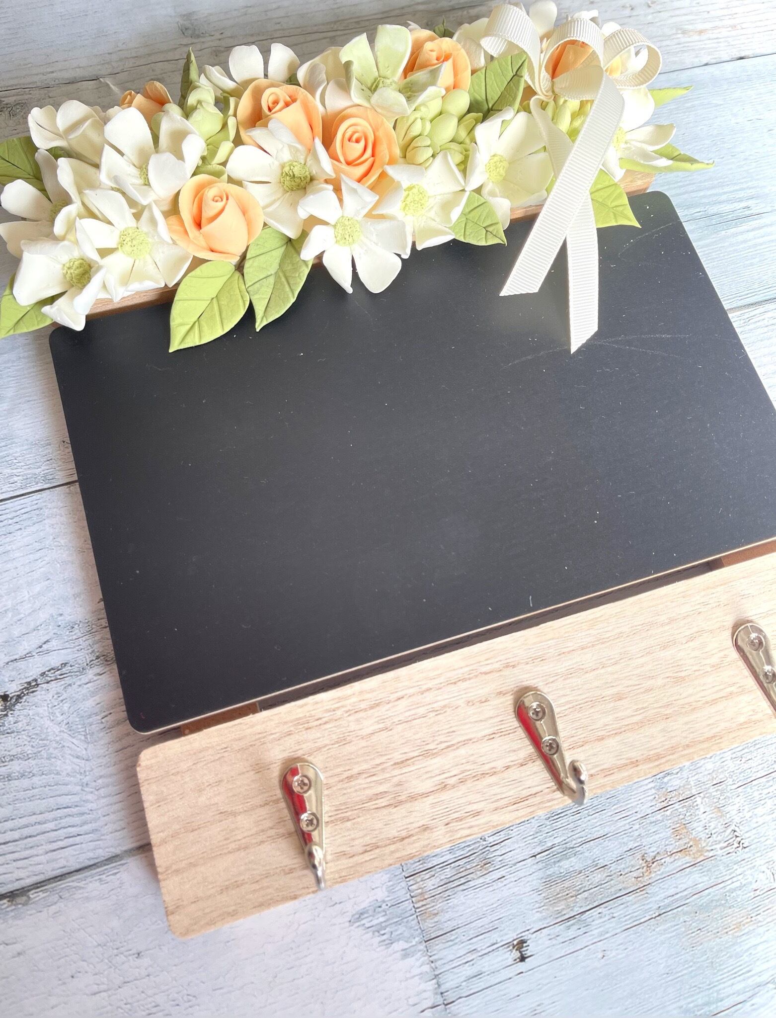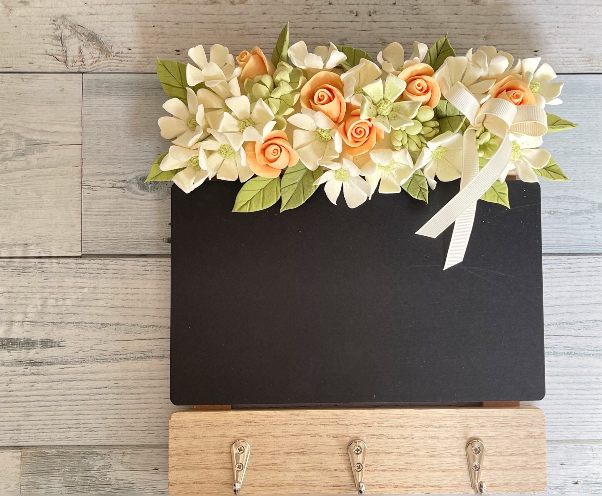 sold out eternal flower*クレイフラワーで彩るメッセージボードとキーフックのアレンジ