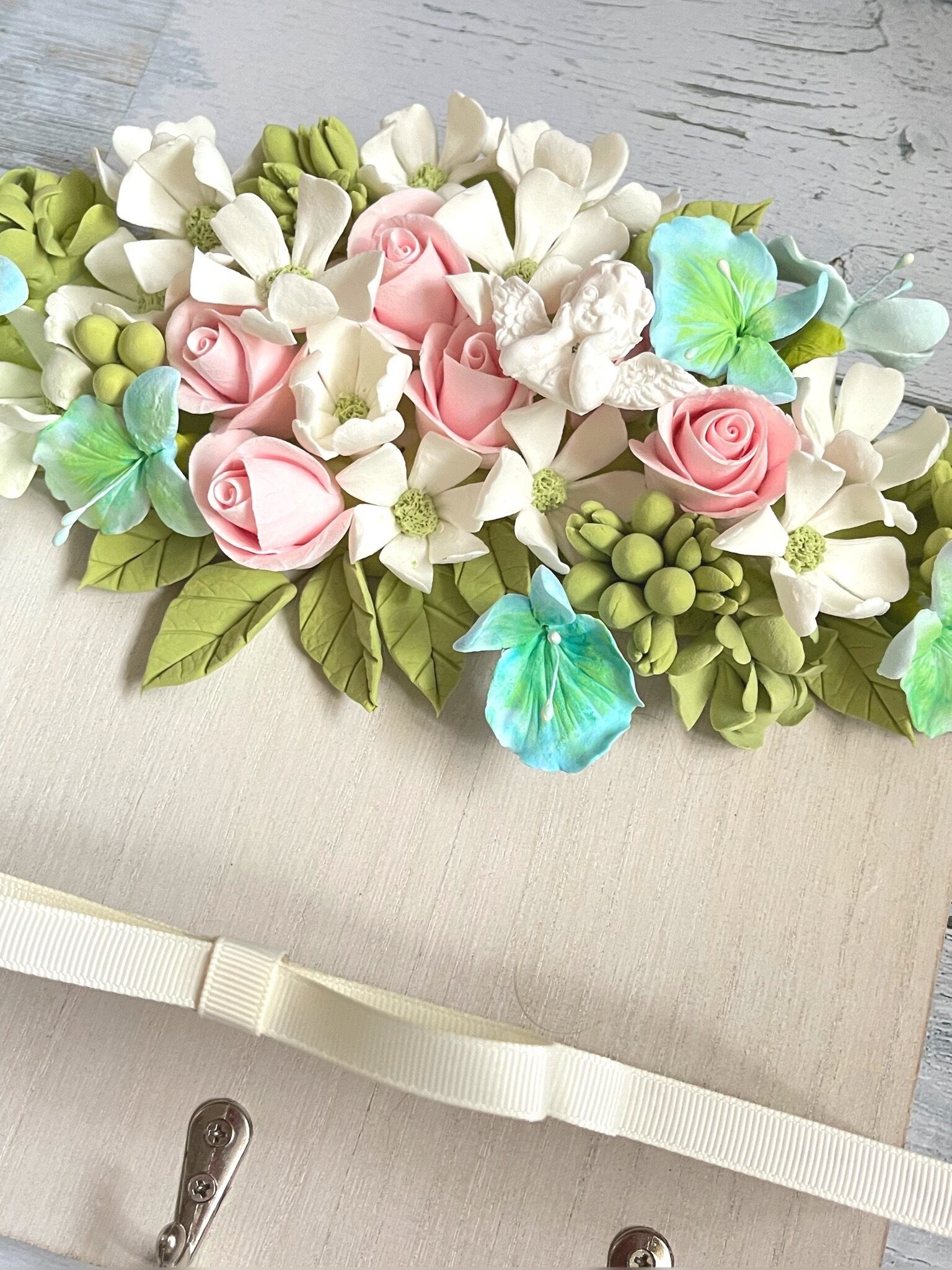 新作*eternal flowerクレイアートで飾る壁飾り*キーフックエンジェルフラワーアレンジ