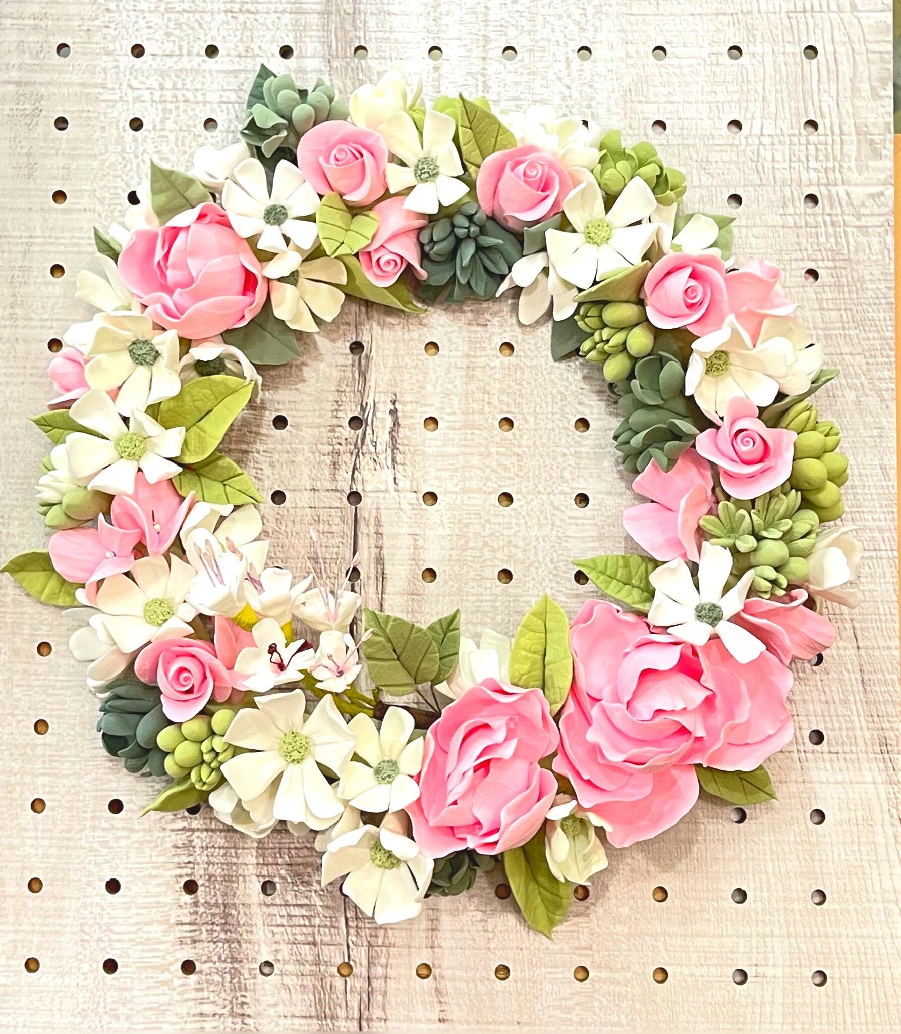 sold out【eternal flower】春が待ちきれなくて*桜とオールドローズのクレイフラワーリース