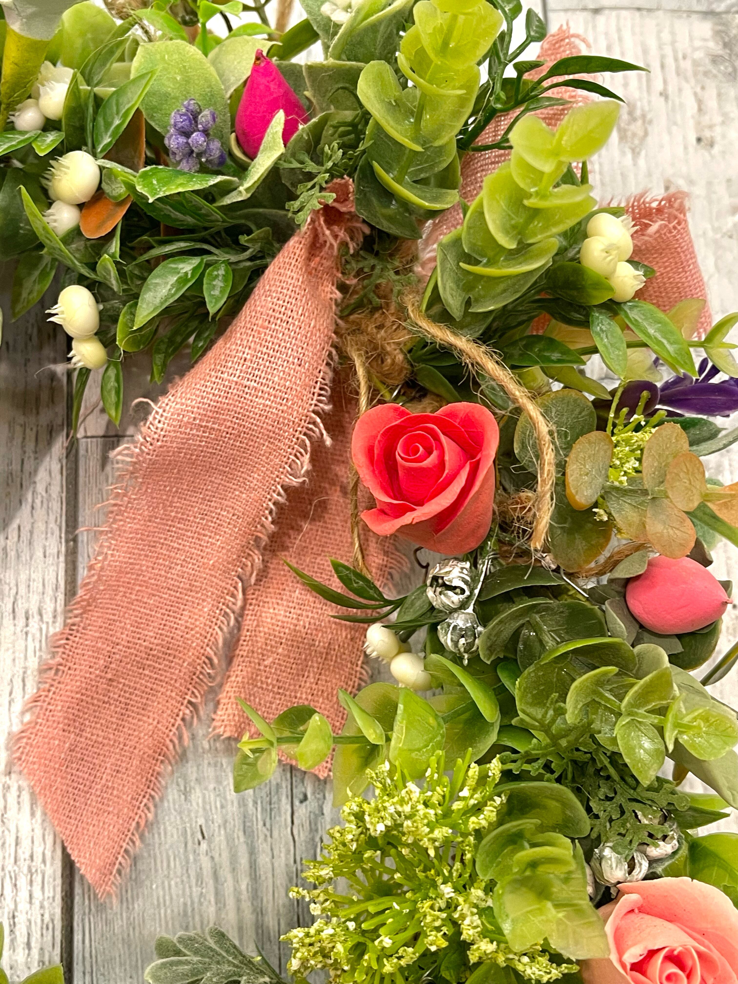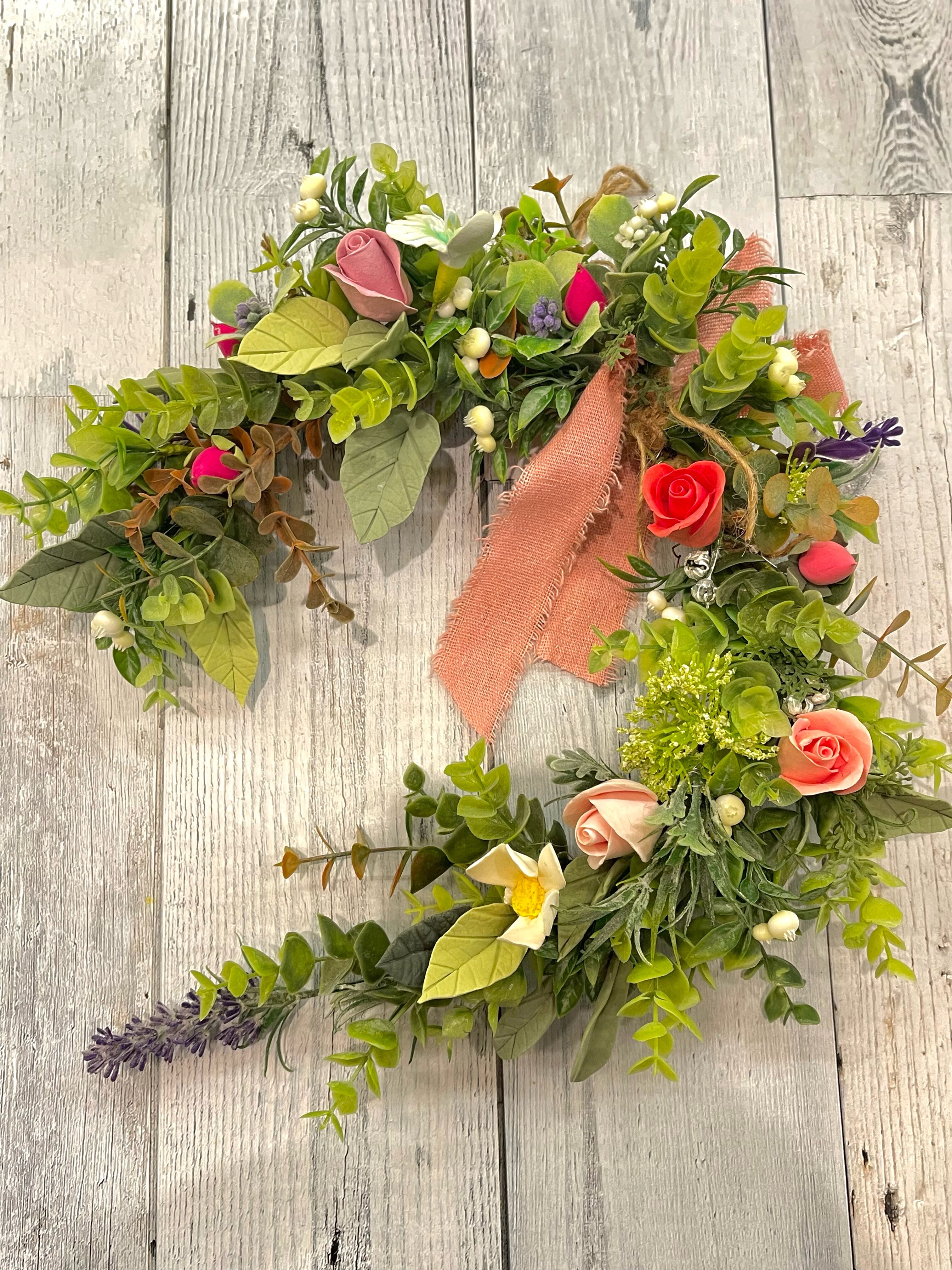 クレイアート*ミニローズとアーティフィシャルグリーンのホースシューナチュラルリース